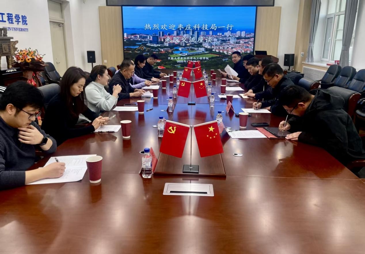 11月27日,山东省枣庄市科技局二级调研员杨升光、枣庄市山亭区人民政府副区长戴娟、山东启腾生物科技有限公司副总经理郭鼎丞一行到食品科学与工程学院洽谈科技合作。学校科研院科技开发办公室(国内合作处)副处长张嘉桐、吉林大学枣庄技术转移中心主任臧柏森、副主任宋欢,食品科学与工程学院党委书记梅士伟、副院长叶海青及学院相关科研项目负责人参加座谈会。