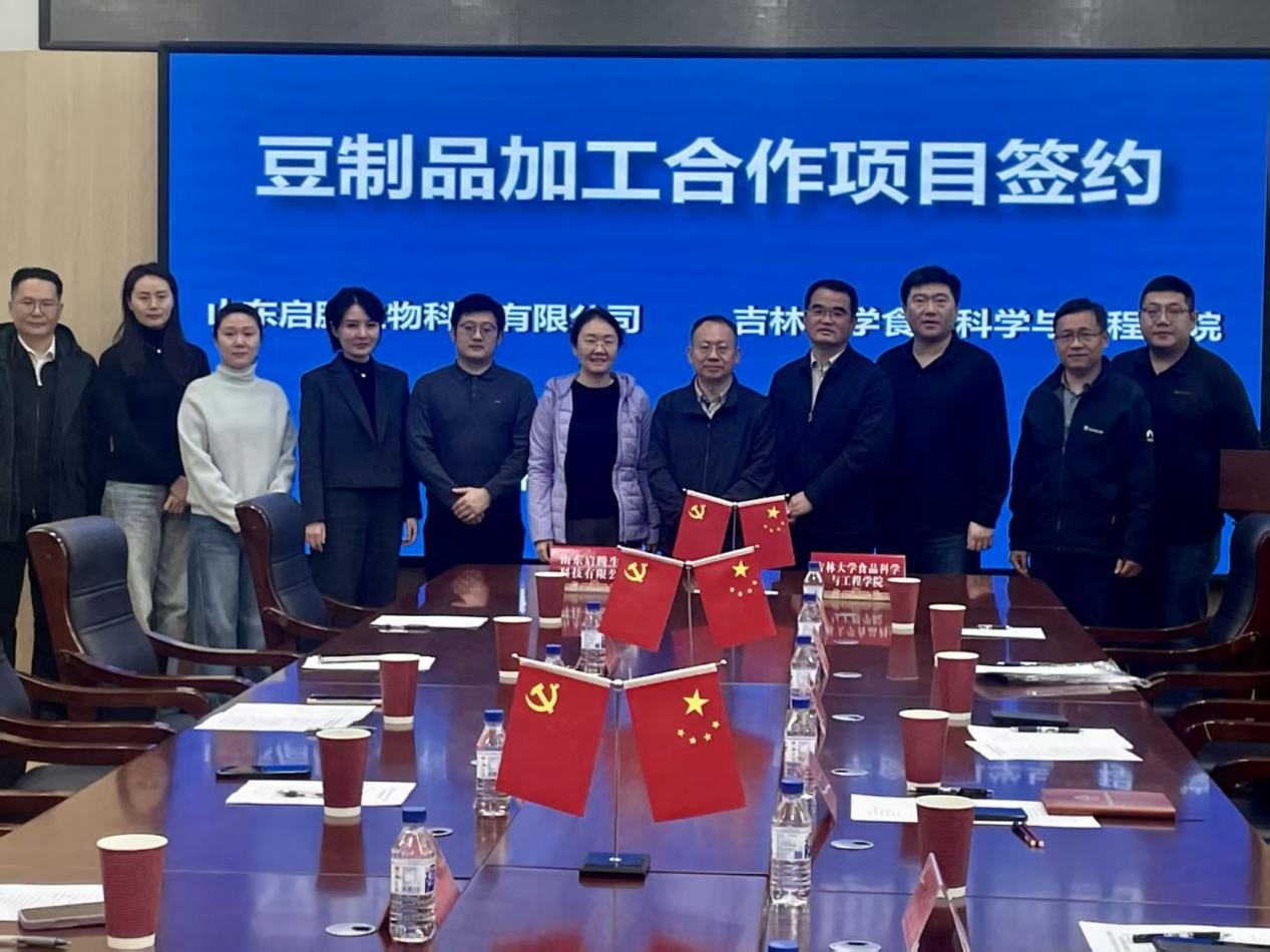 会后,学院与启腾生物科技有限公司签署了豆制品加工项目合作协议。