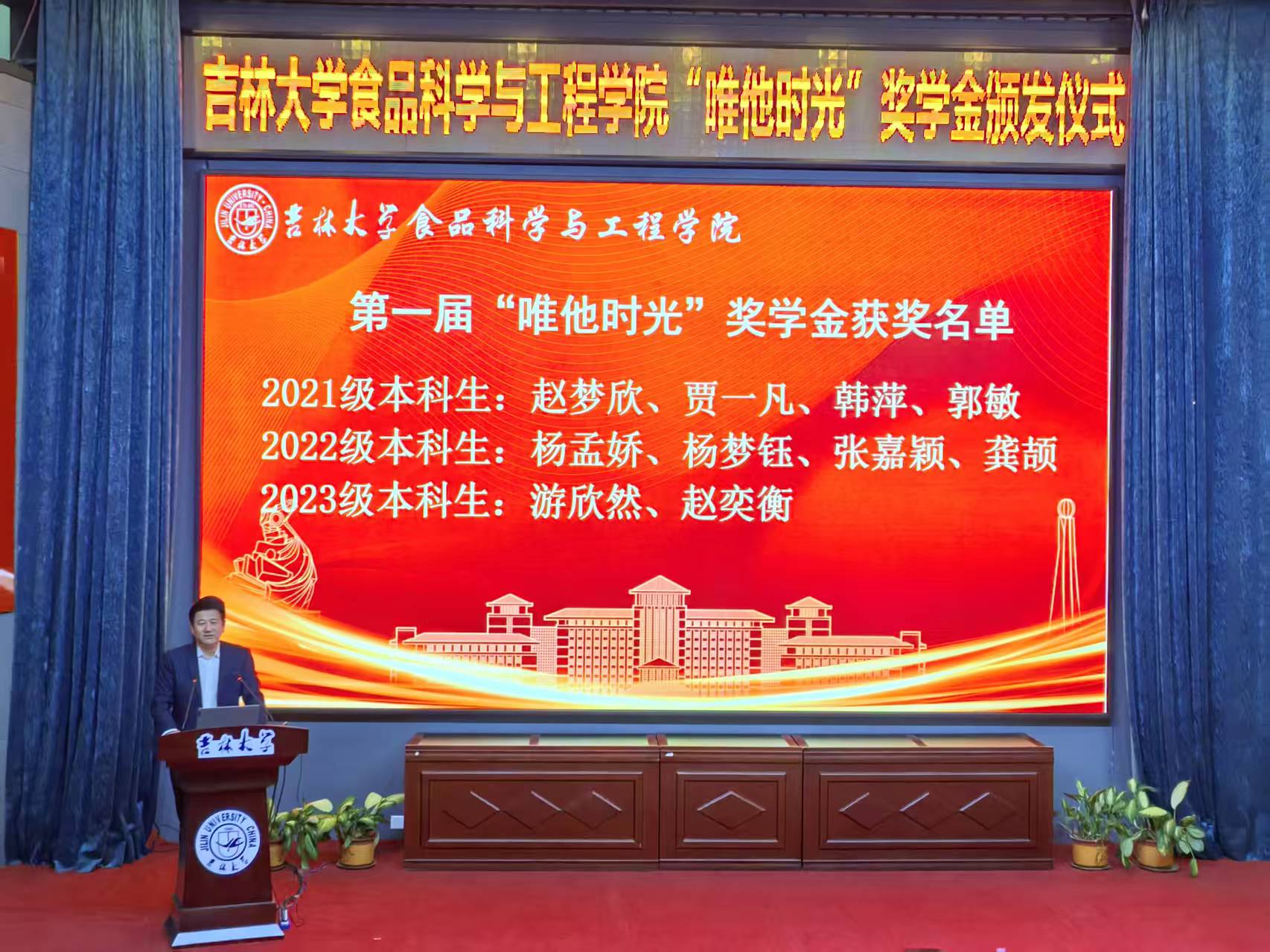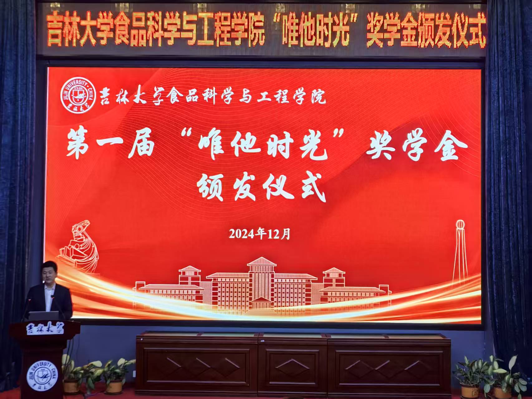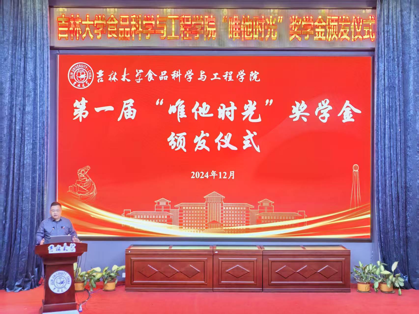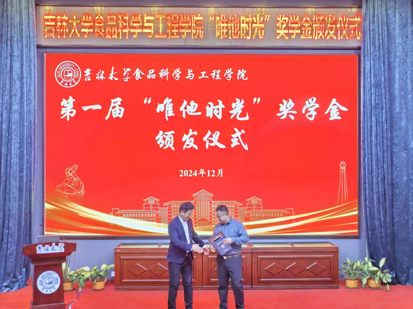 随后,李超副书记宣读《食品科学与工程学院2024年度“唯他时光“奖学金获奖名单》,赵法利总经理为获奖学生颁奖。