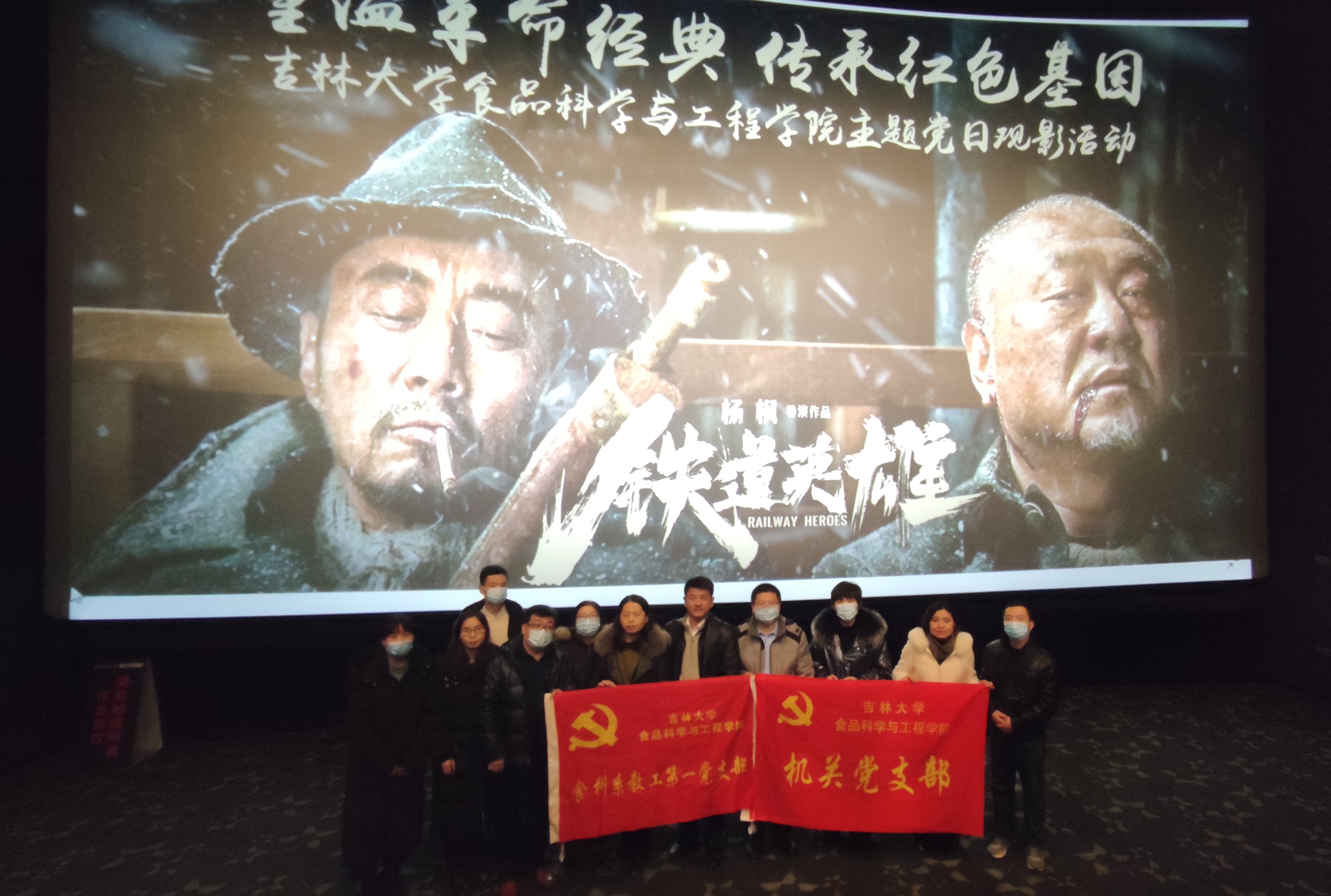 为贯彻落实党史学习教育工作,弘扬伟大抗战精神,传承红色基因,2021年11月24日中午,食品科学与工程学院机关党支部与食品科学与工程系第一教师党支部联合组织观看了影片《铁道英雄》。