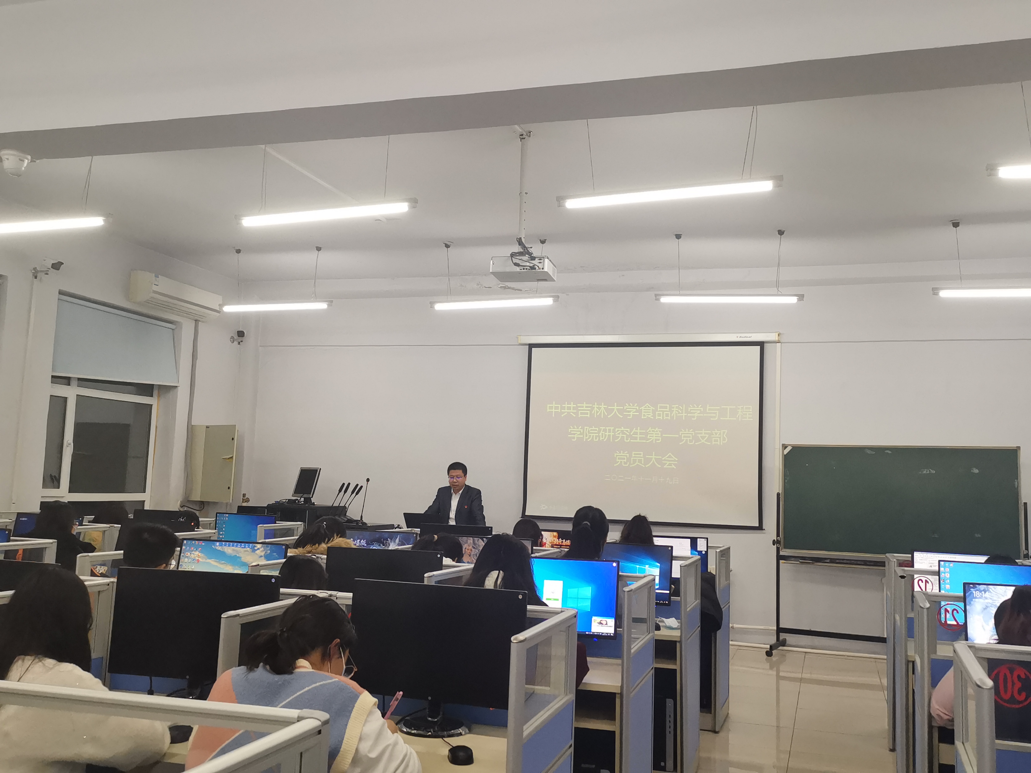 2021年11月19日,食品科学与工程学院研究生第一党支部在食品楼机房召开党员大会,会议由支部书记宫景玉主持。此次大会有两项议程,第一项议程,积极落实“第一议题”制度,学习十九届六中全会精神;第二项议程,讨论和表决接受陈美如等六名发展对象为预备党员。