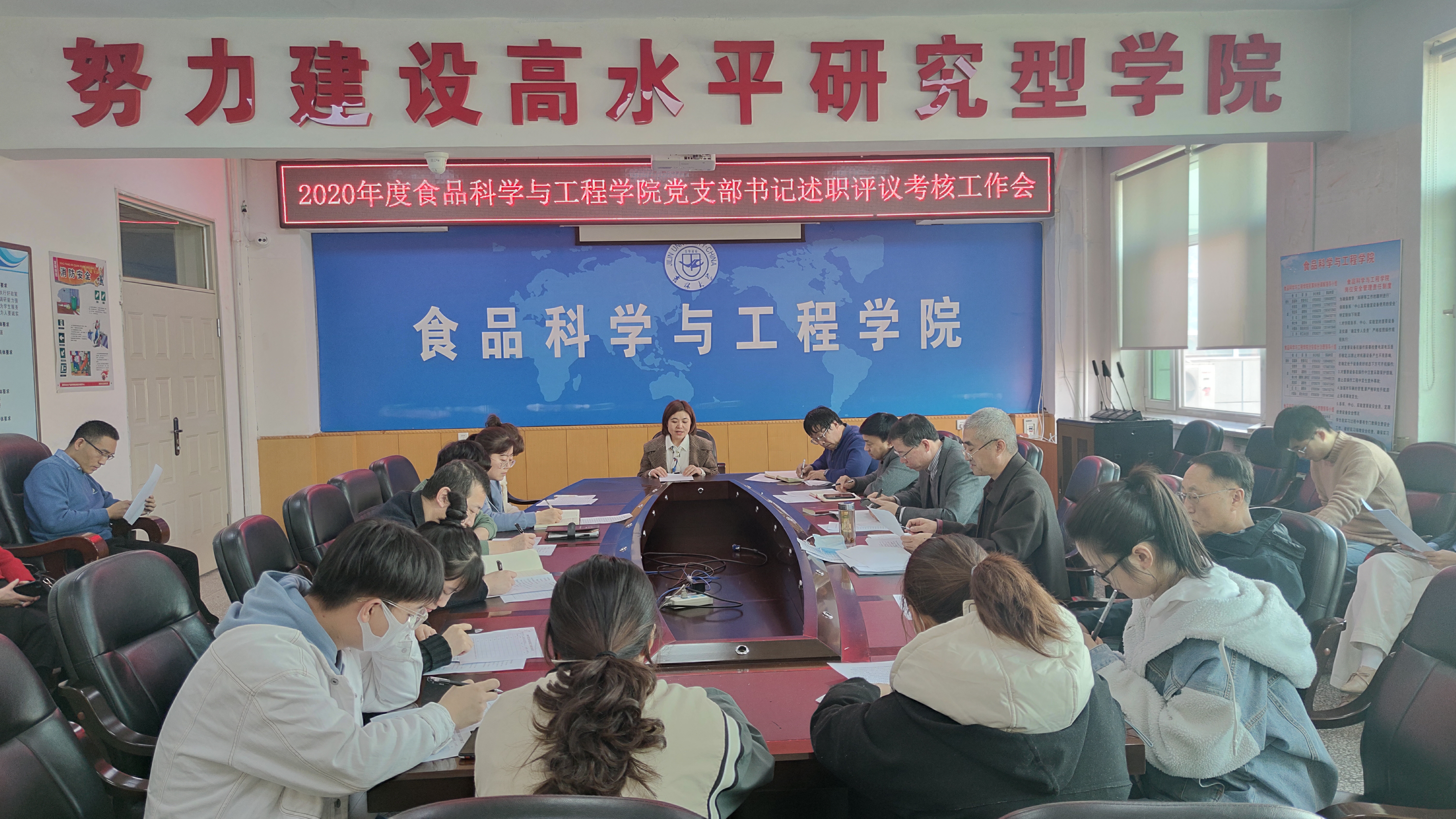 按照学校《关于开展2020年度各级党组织书记抓基层党建述职评议考核的通知》要求,2021年3月25日上午,食品科学与工程学院在食品楼三楼会议室召开2020年度党支部书记述职考评会。学院党委委员、各党支部党员代表、党支部书记参加了会议。会议由学院党委书记董怀智主持。
