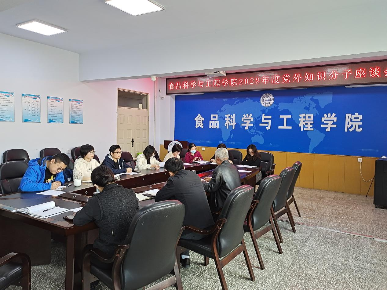 11月9日下午,食品科学与工程学院党外知识分子学习宣传贯彻党的二十大精神座谈会在食品楼312会议室召开,学院党委书记董怀智、副书记兼副院长李超及党外知识分子联谊会成员参与座谈。会议由董怀智主持。