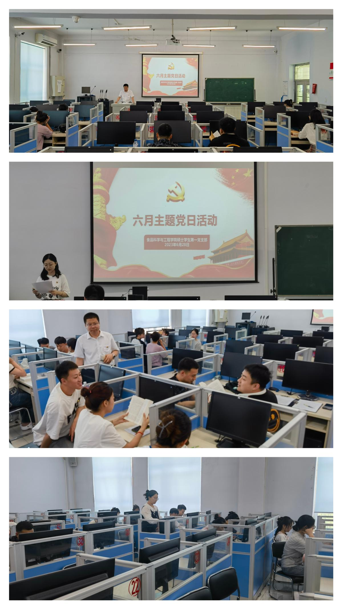为庆祝中国共产党成立102周年,进一步强化党员身份意识和责任意识,弘扬伟大建党精神,引导学生党员不忘初心、牢记使命,激励党员听党话、感党恩、跟党走。6月28日下午,食品科学与工程学院硕士学生第一党支部开展六月主题党日活动。本次党日活动由支部书记宫景玉主持,支部全体党员参加。