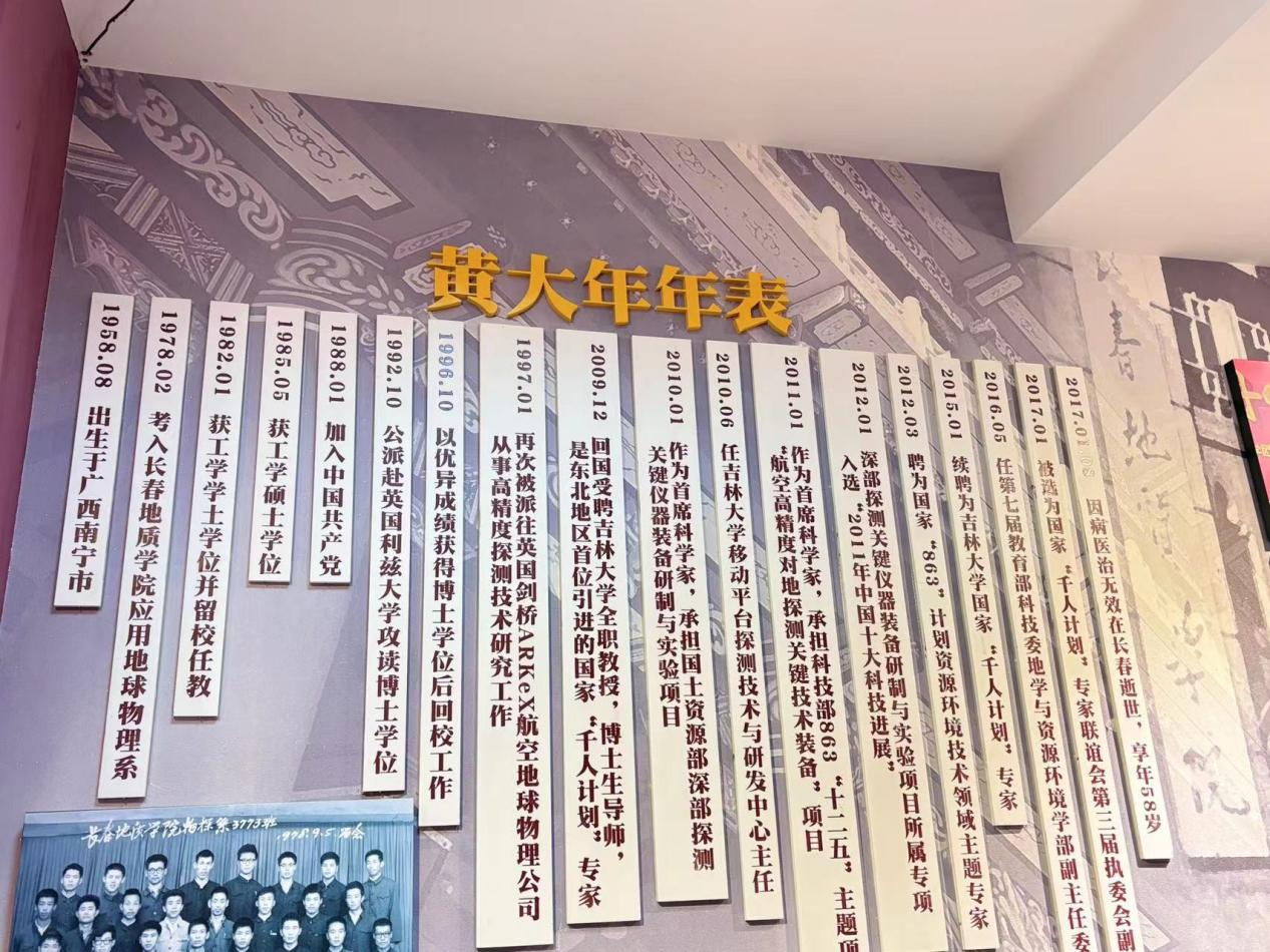 吉林大学黄大年纪念馆记录展示了黄大年同志为吉林大学移动平台探测技术的发展与国家地质研究事业做出的卓越贡献。黄大年教授秉持着科技报国的理想,把为祖国富强、民族振兴、人民幸福贡献力量作为毕生追求。一件件展品、一张张照片、一份份手稿讲义等珍贵档案,深刻展现了黄大年教授追求真理、严谨认真的科学精神和学高为师、诲人不倦的师者风范,同学们被黄大年同志的热血和功勋、执著和坚守、不畏困难砥砺前行的英雄和先贤事迹所感动和震撼。