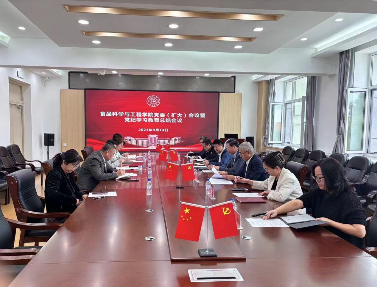 2024年9月14日,食品科学与工程学院在食品楼312会议室召开党纪工作学习教育工作总结会议。学院领导班子成员、党委委员、纪委委员参加会议,学校党建联络员籍海春同志到会指导。会议由学院党委书记董怀智主持。