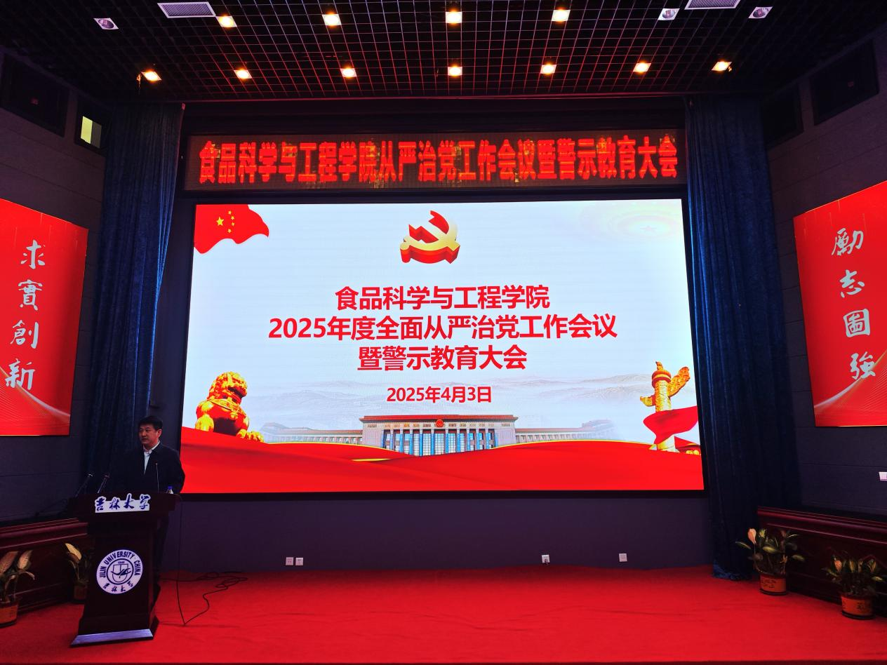 2025年4月3日,食品科学与工程学院召开全面从严治党工作会议暨警示教育大会,学院无课教职工参加会议,会议由学院党委副书记兼副院长、纪委书记李超主持。